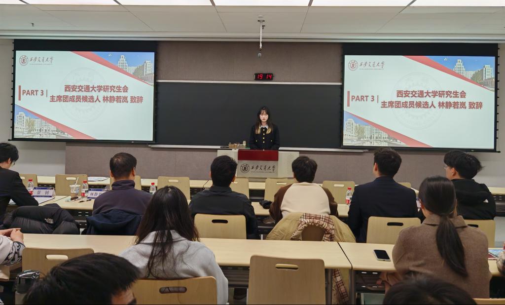 西安交通大学研究生会代表林静若岚代表校研会向本次研代会的召开表示热烈的祝贺,并对网赌平台